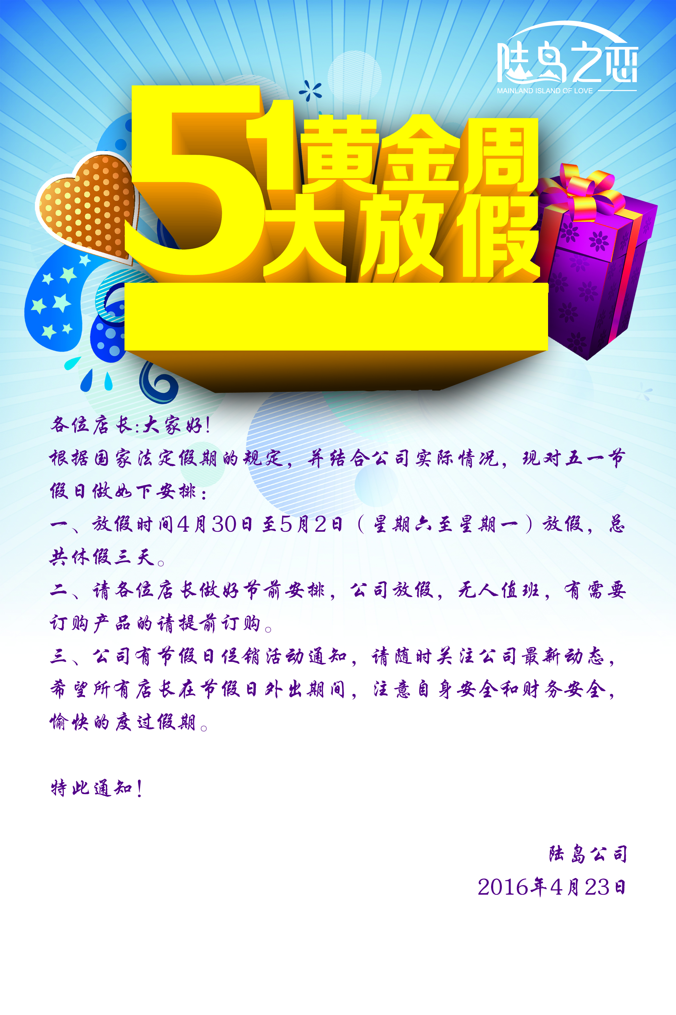 五一放假通知